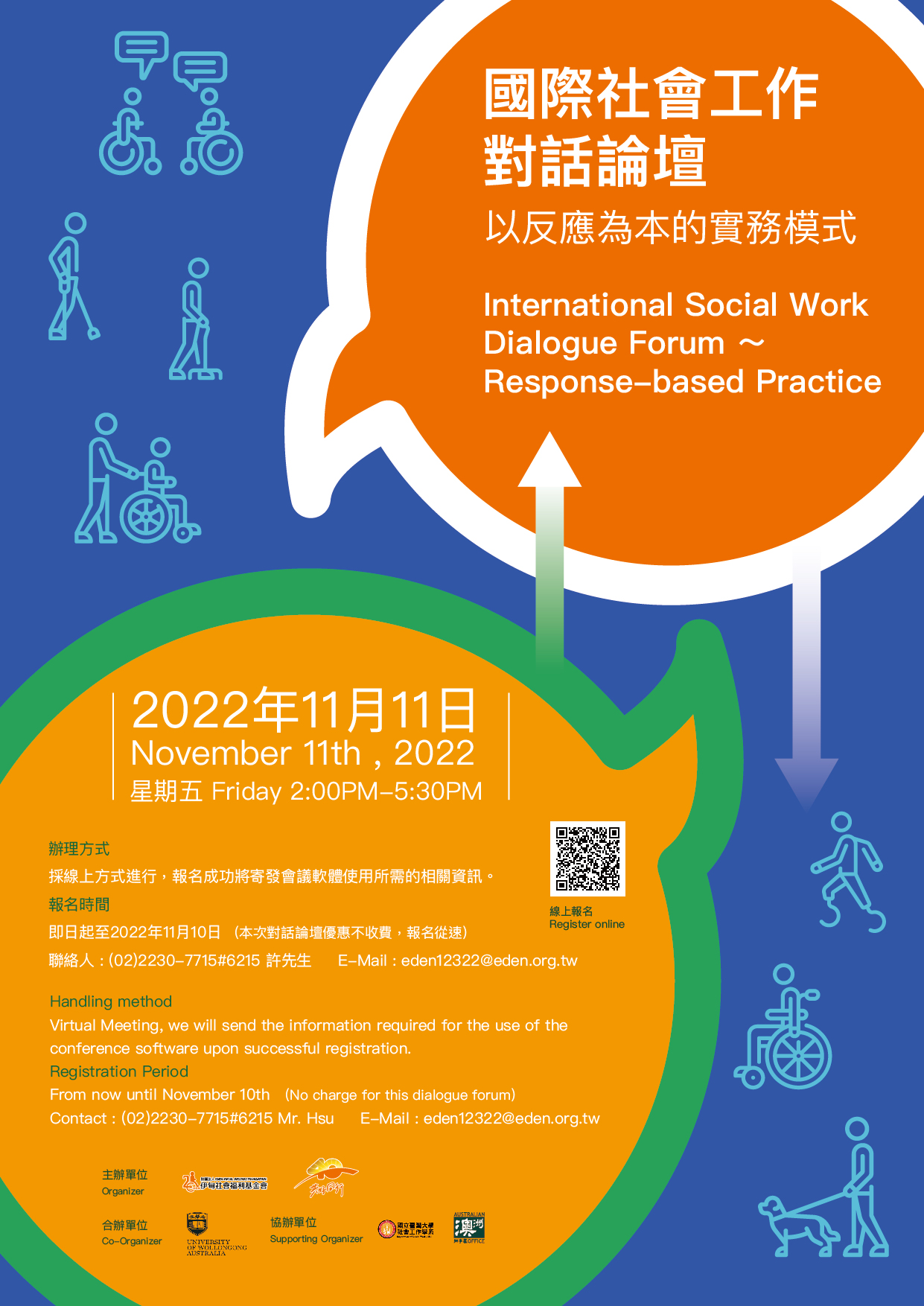Eden Social Welfare Foundation is bringing you INTERNATIONAL SOCIAL WORK DIALOGUE FORUM: RESPONSE-BASED PRACTISE. Due to the global pandemic outbreak in 2019, the INTERNATIONAL SOCIAL WORK DIALOGUE FORUM: RESPONSE BASED PRACTISE had to be postponed. But we are happy to announce that the most anticipated event is finally going to take place.Eden Foundation and the Department of Social Work of National Taiwan University have been working together for a long time to promote developmental social work.