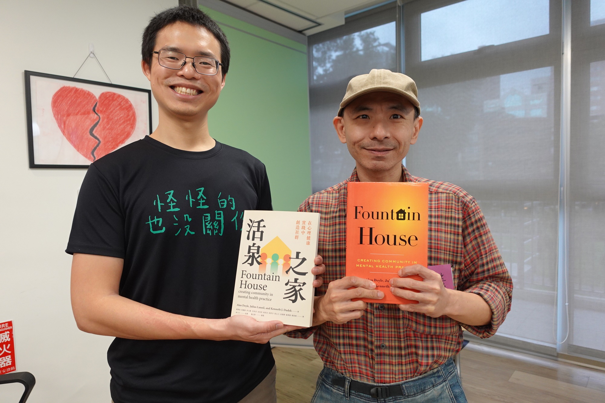Chun-Wei Liu (left), Director of Eden Fountain Clubhouse, and Shang-Yan (right), one of the translators, presenting the new book.