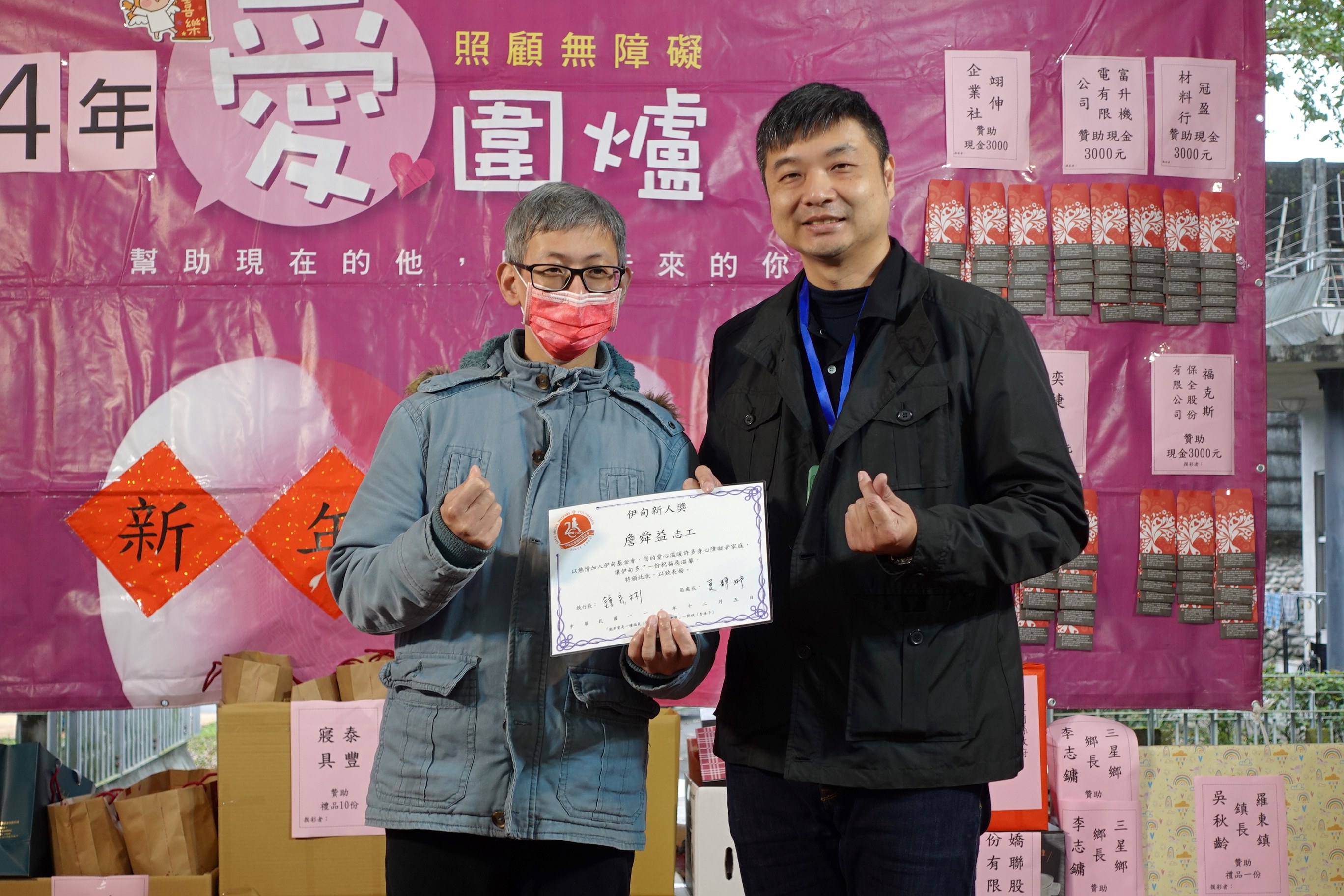 One of the performers, Ah-Yi, who focused on drumming with a confident face, is 41 years old and suffers from moderate intellectual developmental disability combined with psycho-social disabilities. He has employed in general workplace and small-scale sheltered community workshop, but had to stay at home due to maladjustment. His parents, who had to work all day, were unable to provide companionship and care, so he was admitted to Yilan Education and Nursing Institute in 2015 to receive services. Because of his positive and cheerful personality, he loves to be praised, and not only does he try his best to fulfill all the tasks assigned by the service staff, but he is also willing to participate in various performance activities. After ten years of “cultivating”, Ah-Yi is now not only a bocce ball player, but also a senior member of the taiko drum club. He loves to help others, and this year, he has added the status of volunteer, and his enthusiasm for helping others has been highly recognized, and the Director of the institute, Mr. Cheng-Ying Lin, presented him with the Eden Volunteer New Recruit Award today.