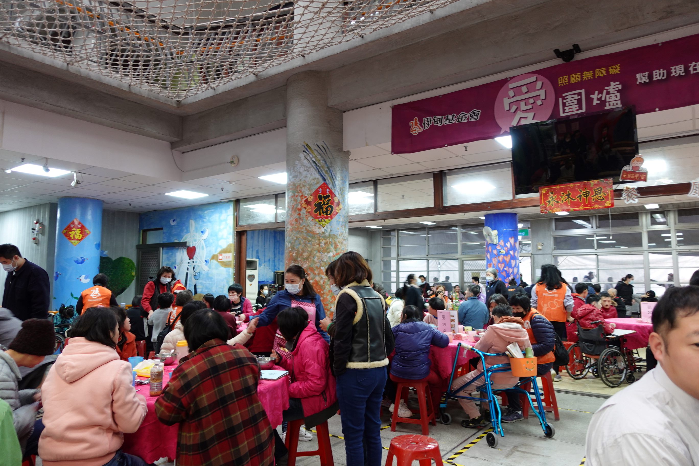 Volunteers accompanied the residents of institute to enjoy the delicious food during Eden Annual Banquet, so that the residents could have a good meal and warmth heart-felt.