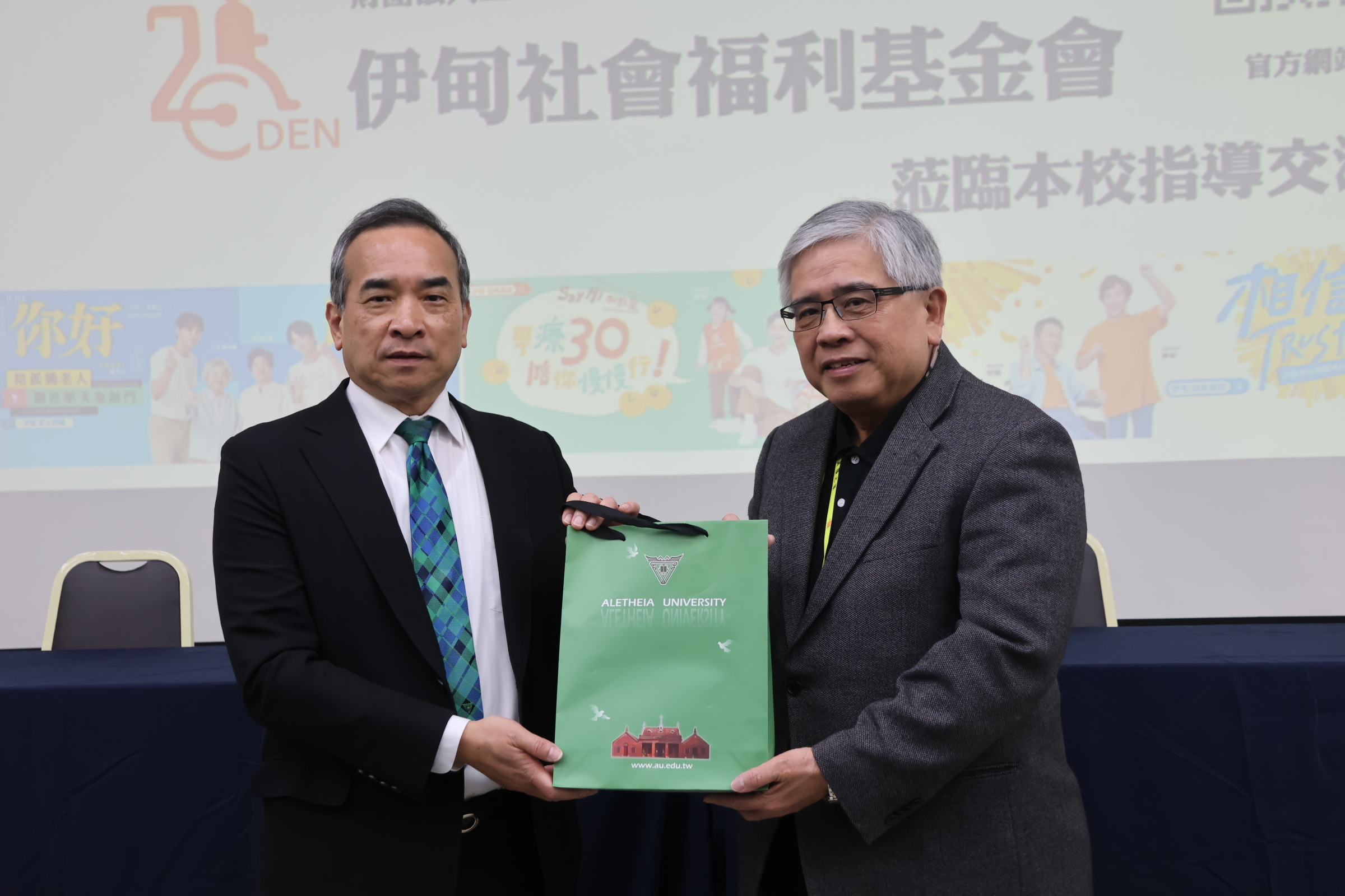Chairman of Aletheia University presented the memorial gift, and Eden's President Mr. Chen Yuzhao received the gift on behalf of the organization.