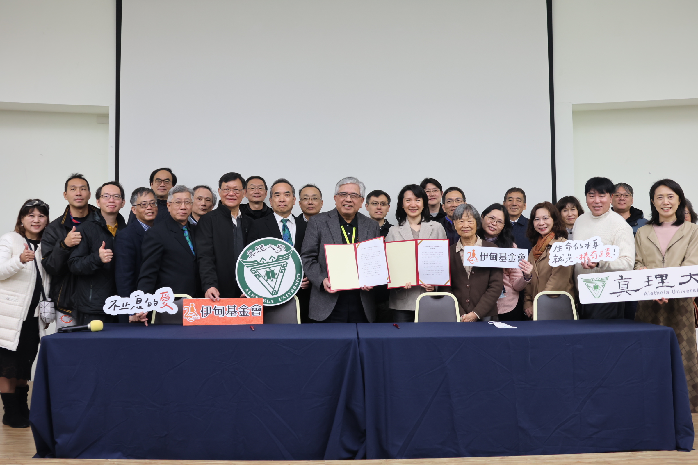 In the face of a super-aging society, lifelong learning and independent aging have become important issues for everyone. President Yi-Fang Lee of AletheiaUniversity and President Yu-Chao Chen of the Eden Foundation signed a Memorandum of Understanding (MOU) at the International Conference Center of Aletheia University on the 13th, Feb. in the presence of a number of VIPs. In the future, through the industry and academic professions of the two parties, we will work together to promote the 'Cooperative Program for Aging-Learning', which will assist to support the life of the senior citizens after retirement and inject new vitality into the higher education.