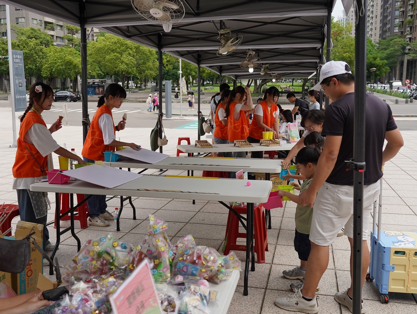 In addition to the outdoor games and bazaar, the indoor "Creative Art Playground: Folk Toys Workshop" offers a completely different experience. This activity was carefully designed by The One professional team, inviting families of children with special needs and philanthropic corporate partners to participate. The workshop centers around the heartwarming picture book story "The Peace Tree", incorporating interactive games with music and rhythm, and wrapping up with the parents and children creating their own "Peace Tree". Through these DIY activities, children's sensory integration development is strengthened, and emotional bonding between parents and children is deepened. Furthermore, the imagery of "planting a tree" symbolizes that 'love' can bridge barriers, promote mutual acceptance of differences, and finally learn the profound meaning of "common good and inclusion".